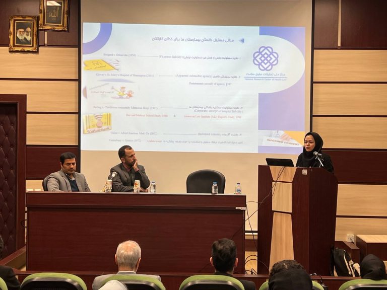 در این نشست که با همکاری مرکز ملی تحقیقات حقوق سلامت و موسسه حقوق تطبیقی دانشگاه تهران برگزار شد، آقای دکتر صادق شریعتی نسب و سرکار خانم دکتر مونا عبدی به بیان نتایج تحقیقات خود در چالش های حقوقی خدمات تشخیصی و درمانی پرداختند.